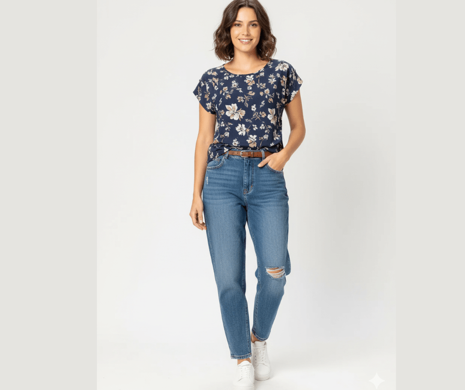 - Blusa por dentro da calça em partes frontais ajuda a definir a cintura sem tirar o conforto.
