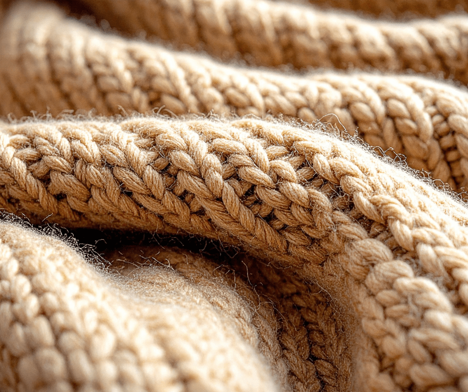- Tecidos ideais: tricô, acrílico, lã sintética, suede, malha canelada, tweed com fibras sintéticas