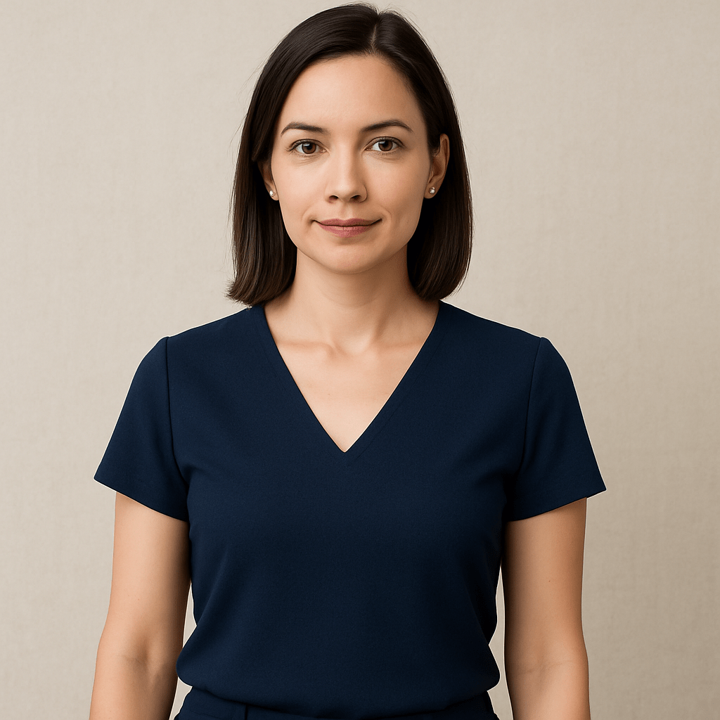 Para mulheres maduras, o decote em V continua sendo um grande aliado, pois alonga a silhueta e valoriza o colo de forma sofisticada. Modelos com mangas ¾ ou longas, tecidos nobres e cortes mais ajustados transmitem confiança. Cores sólidas, tons sóbrios ou estampas delicadas realçam a elegância natural dessa fase.